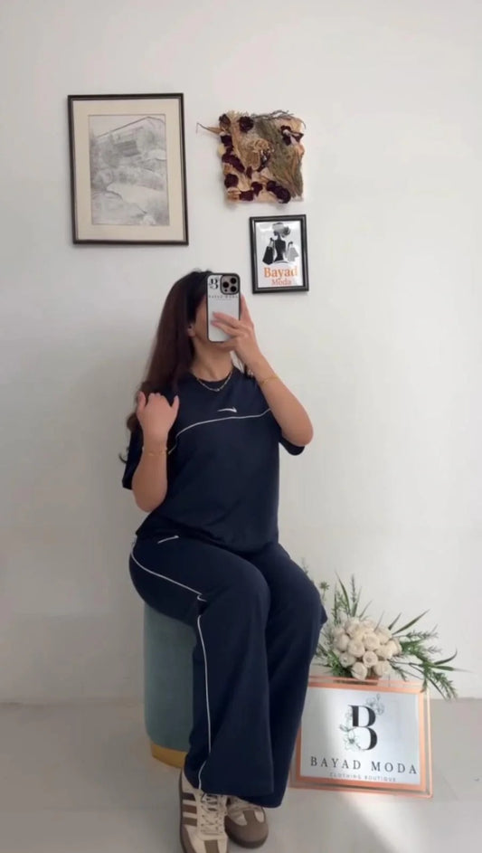 CH-6022 BEAS Women Casual T-Shirt & Side Stripe Track Pants Co-Ord Set