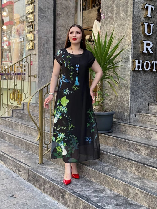 CH-570 2 Piece Floral Printed Party Turkish Style Dress