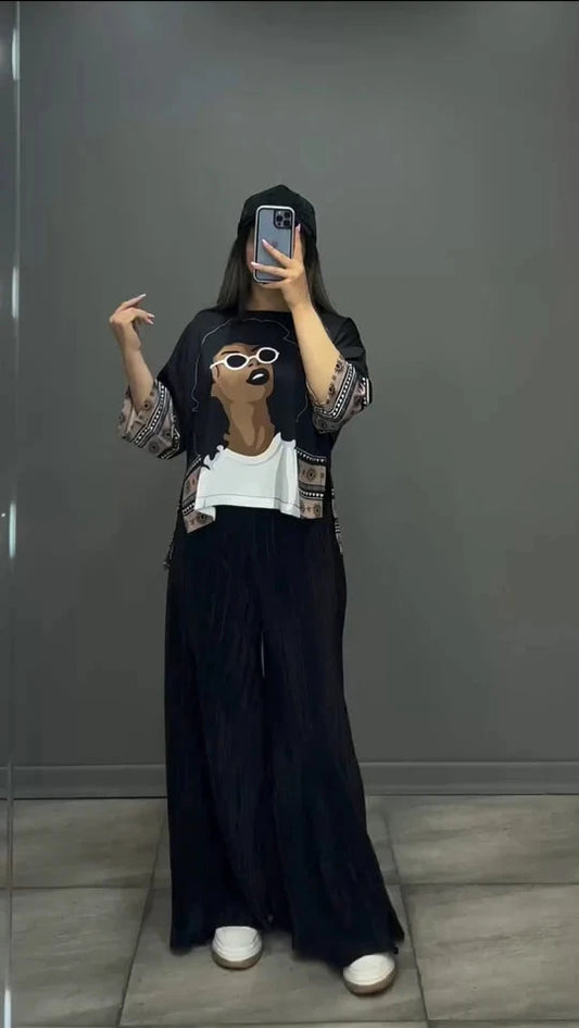Butterfly Blouse With Loose Wide Trouser CH#48