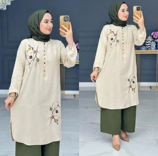 CH-538 Beaswear 2 pc button casual top with straight trouser
