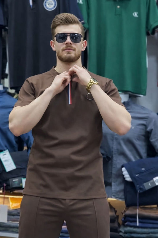LI#36 COLLAR STYLE WITH ZIPPER LINING T-SHIRT AND SHORTS