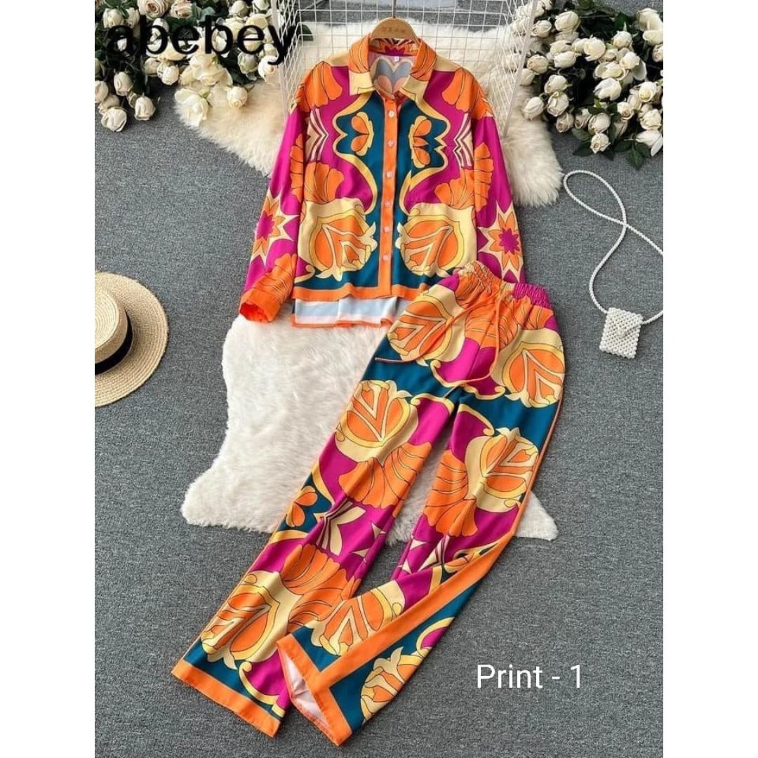 Ch # 353 - 2023 Fashion Print Elegant Women's Set Elastic Waist Straight 2 Piece Pajamas Set Casual Chic Youth Vacation Home Suit