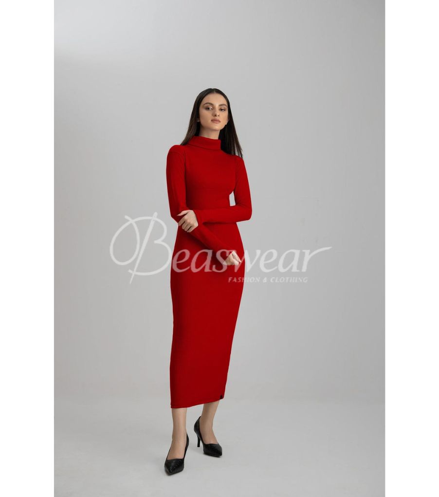 Ch # 361 Ribbed Cotton High Neck Bodycon Dress