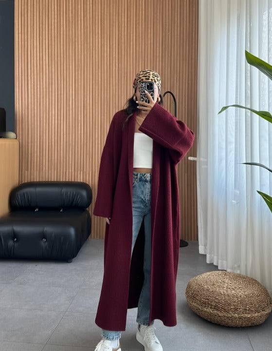 CH-484 BEA'S Longline Street-Style Long Winter Fleece Fabric Gown
