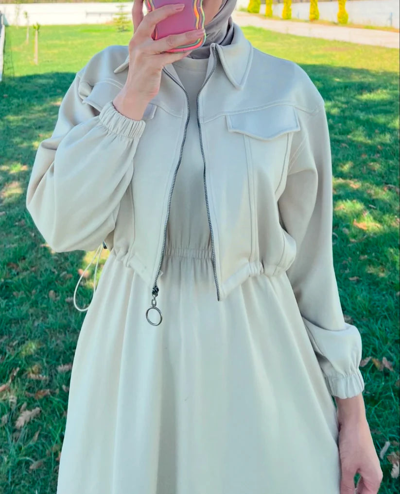 CH-499 BEA'S 2 Pcs Winter Outfit Long Frock With Upper Fleece Jacket