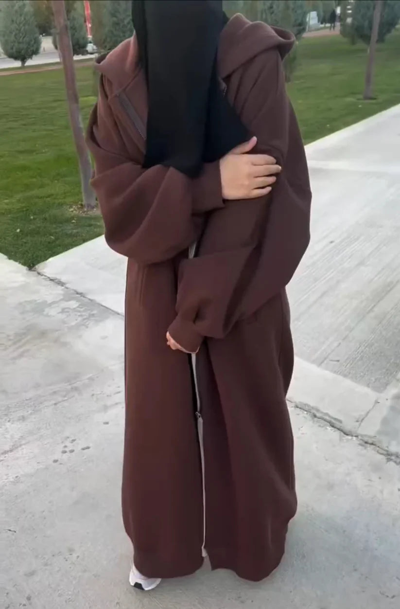 CH-502 BEA'S Drop Shoulder Long Zipline Winter Fleece Hoodie