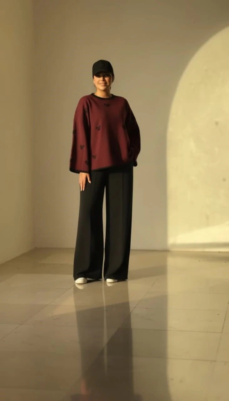 Crafted from premium breathable fabric, this relaxed-fit ensemble features a drop-shoulder oversized top paired with wide-leg trousers that flow with ease and confidence. The earthy neutral tone gives it a timeless appeal, while the modern silhouette ensures it stands out in every setting – from casual hangouts to creative workspaces.