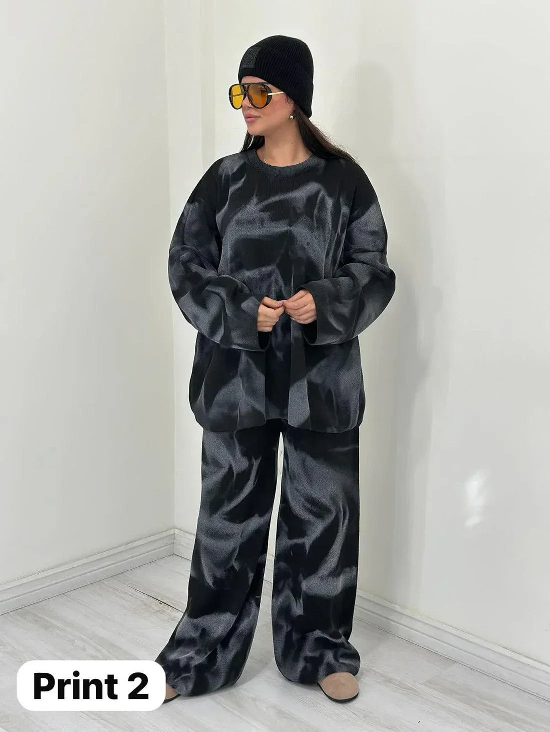 Crafted from premium breathable fabric, this relaxed-fit ensemble features a drop-shoulder oversized top paired with wide-leg trousers that flow with ease and confidence. The earthy neutral tone gives it a timeless appeal, while the modern silhouette ensures it stands out in every setting – from casual hangouts to creative workspaces.