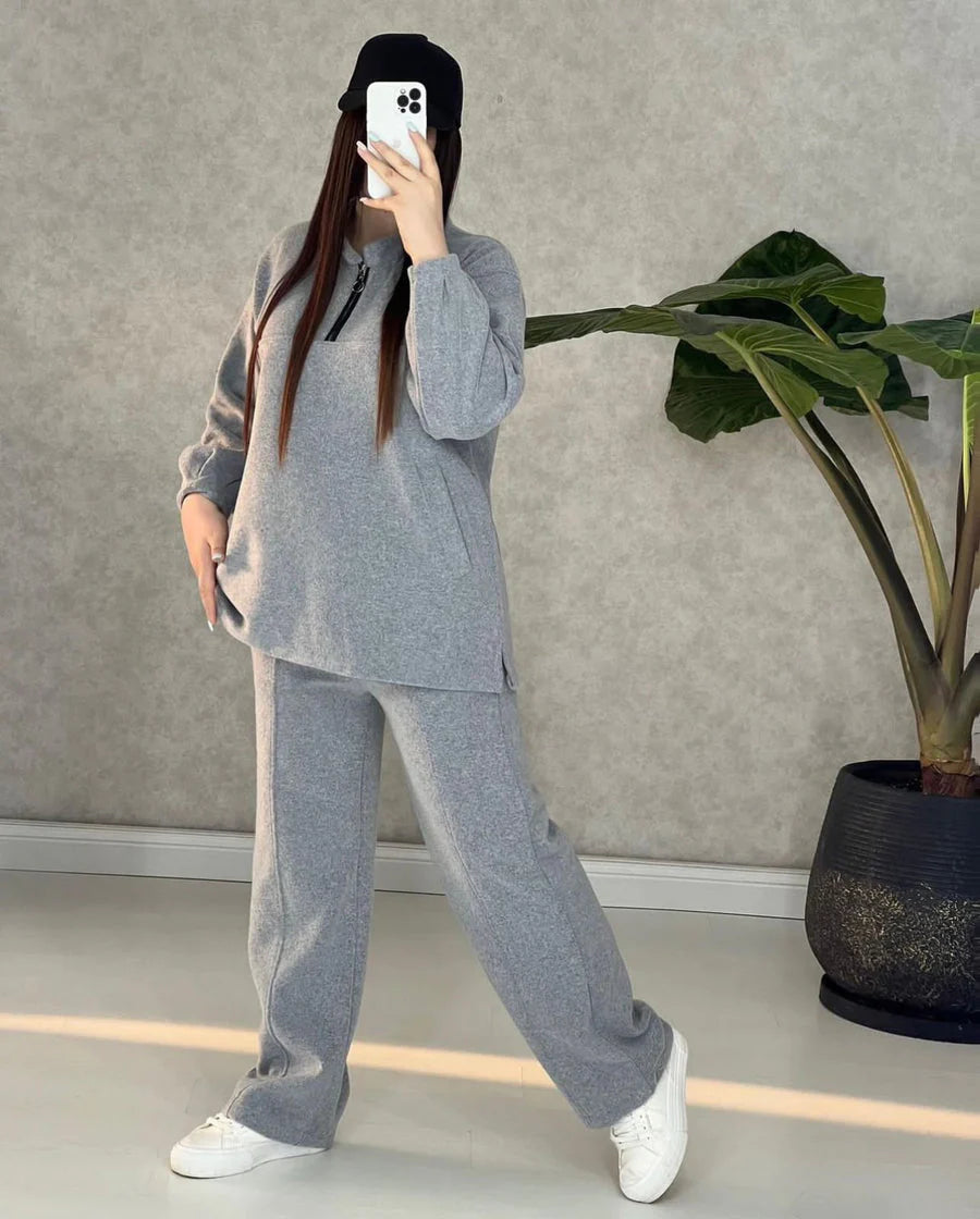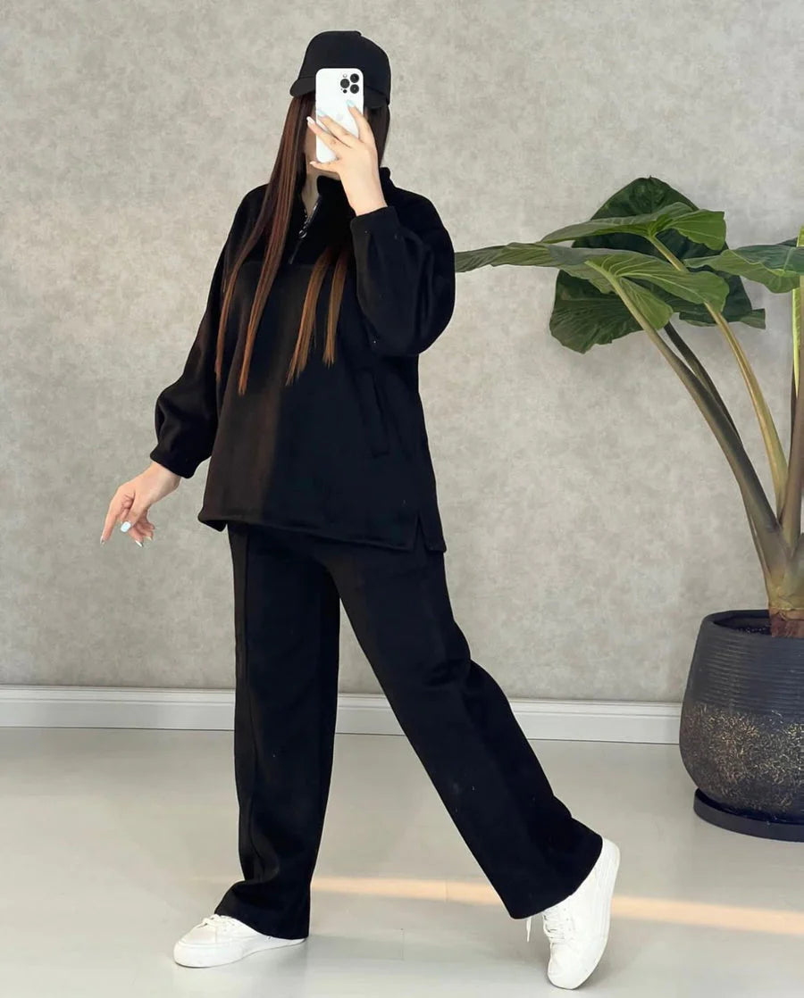 CH-322 WINTER SIDE POCKET 2 PIECES FLEECE DRESS