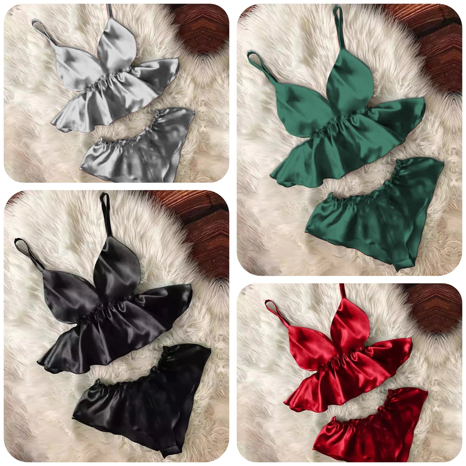 Women V-Neck Eyelash cami Bowknot Shorts Set CHK # P46